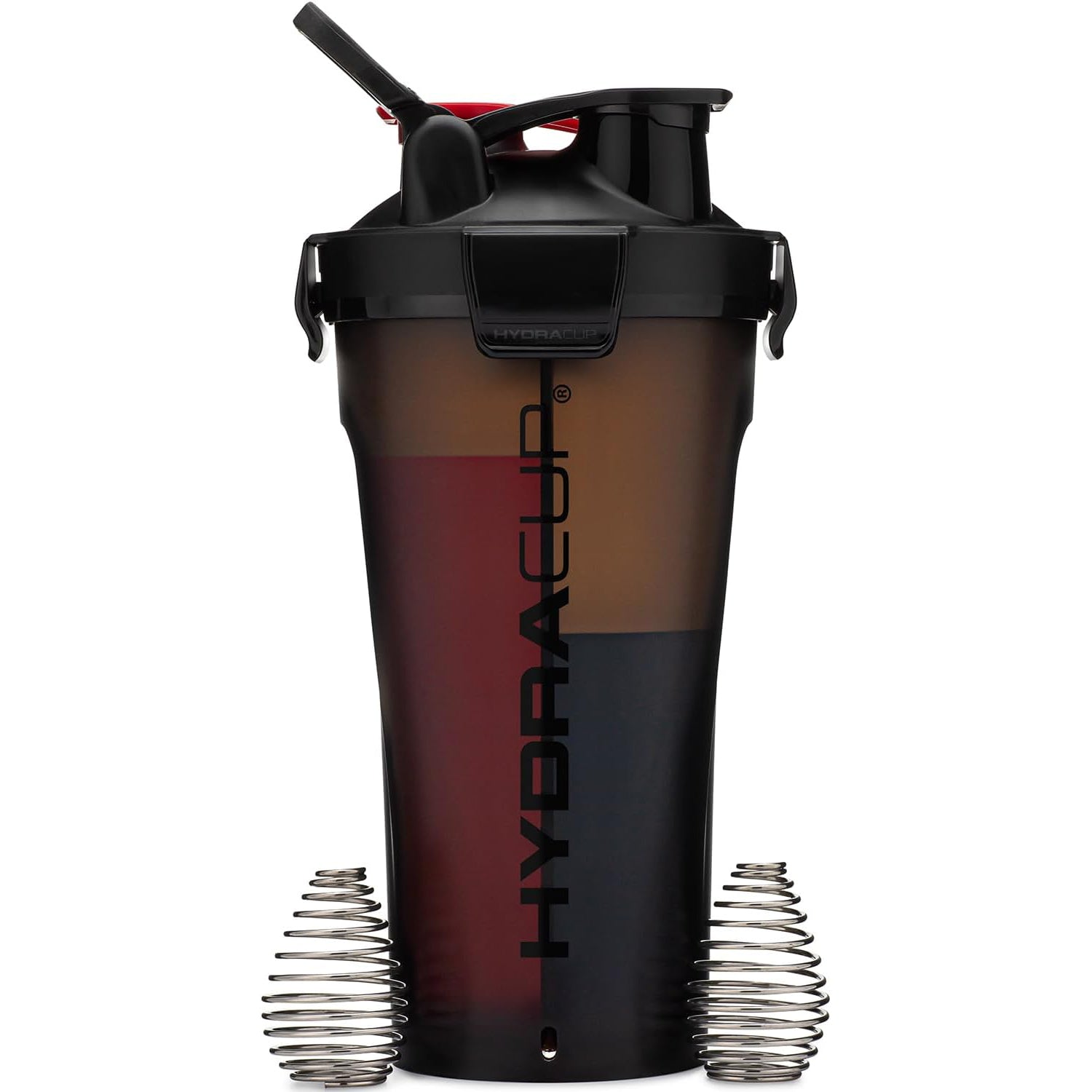 Hydra Cup DualShaker Pro 32 oz Shaker Bottle for Protein Shakes, Shaker Cup w/Handle & Ball Blender Whisks, Dual Mixing Shaker Bottle with Storage, 2 in 1, for Travel To Go, BPA Free (Black)